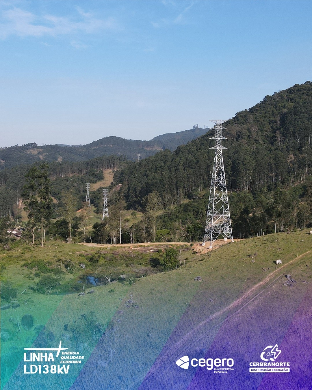 A execução da Linha 138 kV (LD138kV) iniciou em novembro 2023 (os estudos inicias e o desenvolvimento do projeto teve início em 2020) e foi finalizada em julho deste ano. No total foram 119 estruturas instaladas, sendo 56 torres e 63 postes de metal ou concreto e 30,4 quilômetros de rede construída em tensão de 138 quilovolts. A rede passou por 155 propriedades. Com a conexão ao sistema interligado nacional, a capacidade de fornecimento da Cegero e da Cerbranorte foi quadruplicada, além de permitir uma economia anual prevista para cada Cooperativa de aproximadamente R$ 4,5 milhões, beneficiando diretamente a conta de luz dos associados/consumidores com tarifas e reajustes menores.