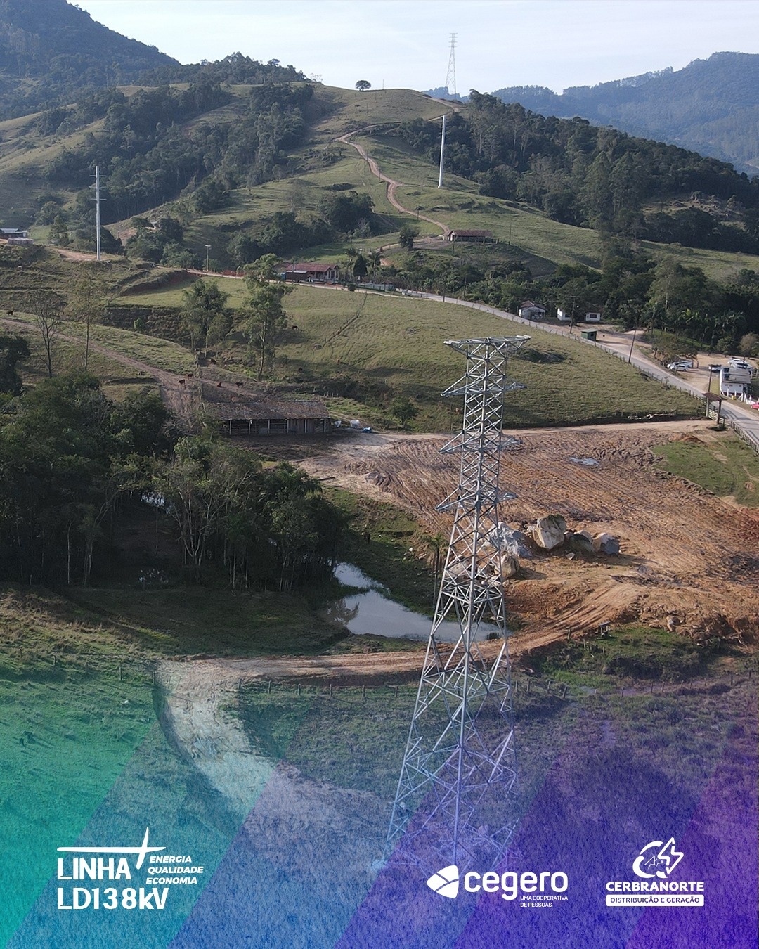 A execução da Linha 138 kV (LD138kV) iniciou em novembro 2023 (os estudos inicias e o desenvolvimento do projeto teve início em 2020) e foi finalizada em julho deste ano. No total foram 119 estruturas instaladas, sendo 56 torres e 63 postes de metal ou concreto e 30,4 quilômetros de rede construída em tensão de 138 quilovolts. A rede passou por 155 propriedades. Com a conexão ao sistema interligado nacional, a capacidade de fornecimento da Cegero e da Cerbranorte foi quadruplicada, além de permitir uma economia anual prevista para cada Cooperativa de aproximadamente R$ 4,5 milhões, beneficiando diretamente a conta de luz dos associados/consumidores com tarifas e reajustes menores.